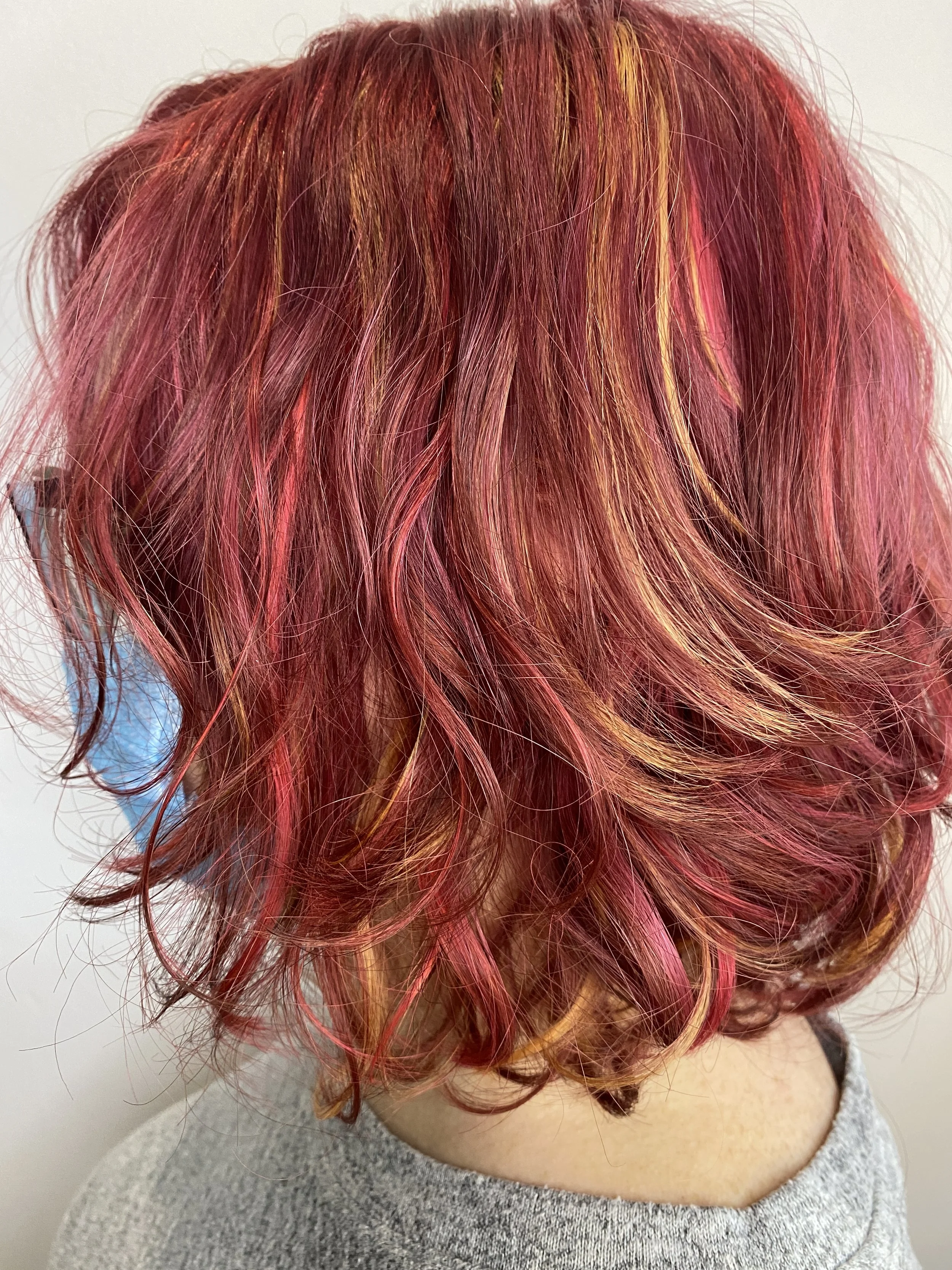 In 2013 I received my Deva Cut certification and began my journey as a curl specialist. Often curly haired people have struggled with their hair since childhood, so I find it very rewarding to help them fall in love with their hair all over again! We have a plethora of techniques and products for curly and wavy hair at the salon and we can find the perfect match for your hair.